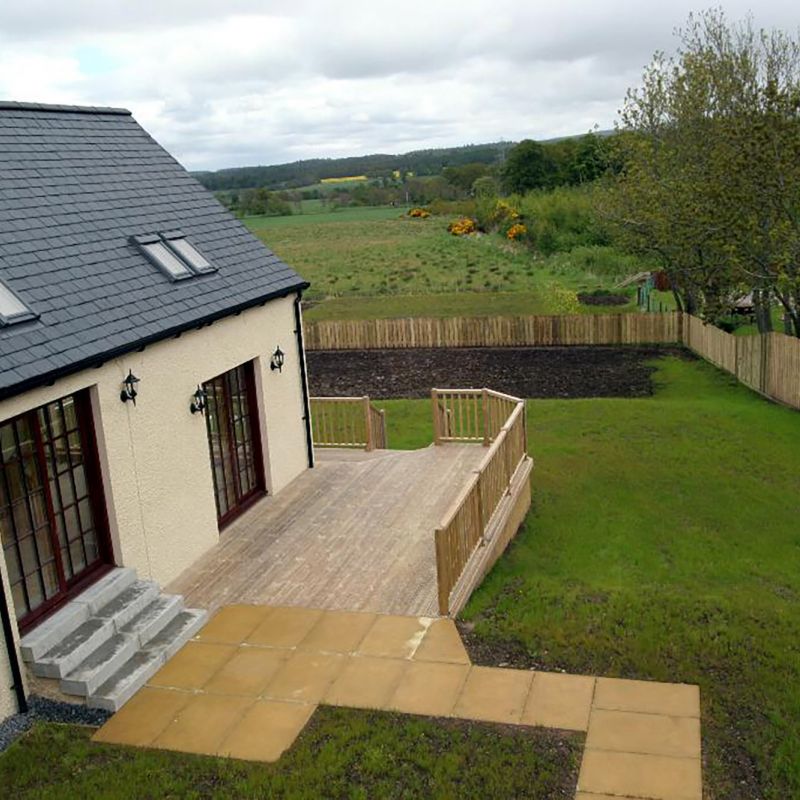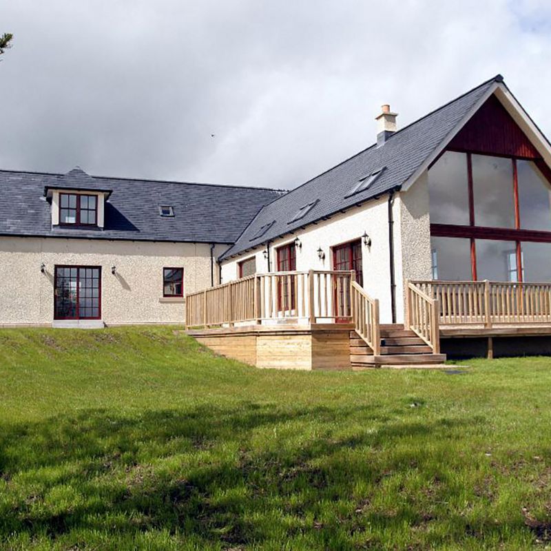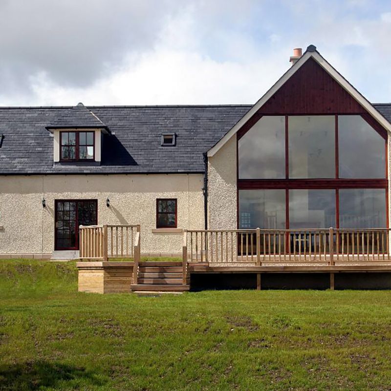 The outstanding feature of these properties is the sunken lounge and glazed gable wall that allows for an open aspect over the local countryside towards the Cawdor hills.