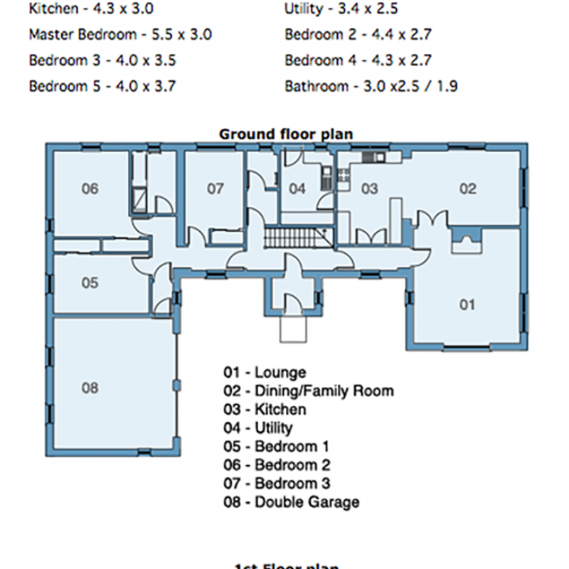 Design features include open fire place, raised tie ceilings to lounge and family areas, open plan farmhouse kitchen/family room, master bedrooms with en suite, double garage with electrically operated doors, oil fired central heating, oak panel doors with glazed doors to living areas.